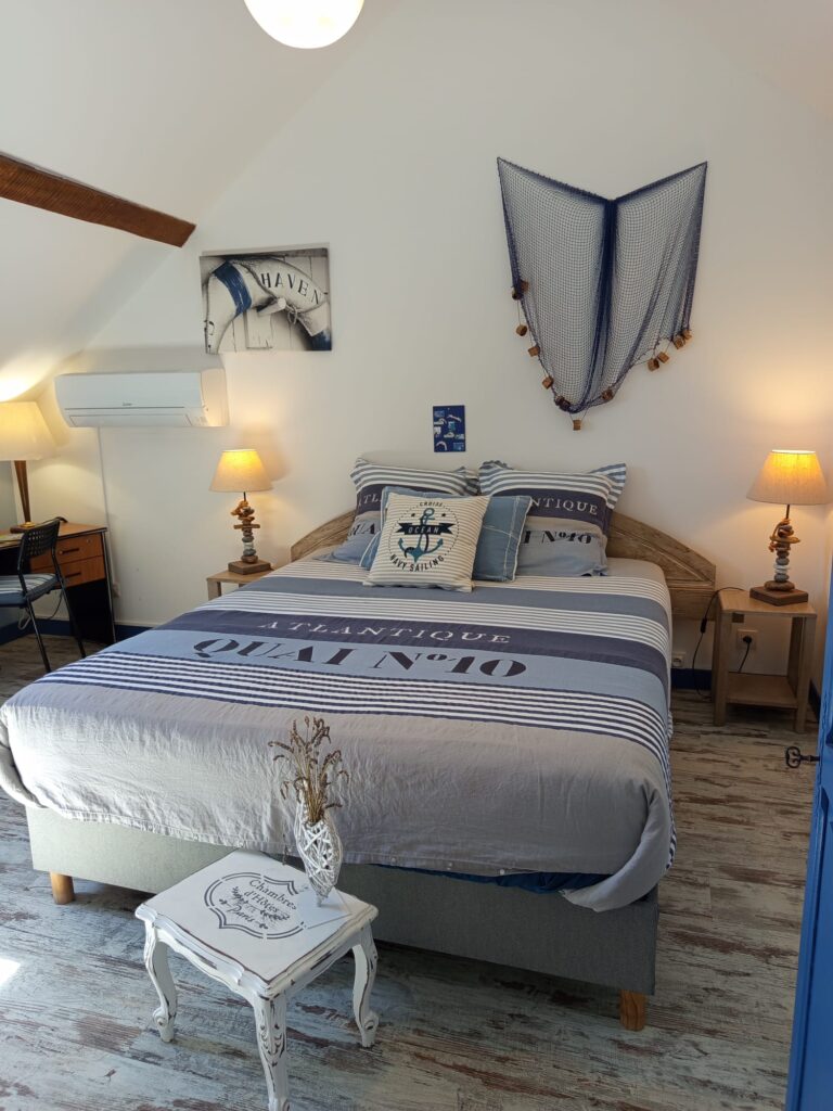 Notre chambre Océane de 30 m2 peut accueillir 3 personnes avec un lit de 1,60m et un lit de 0.90m.
