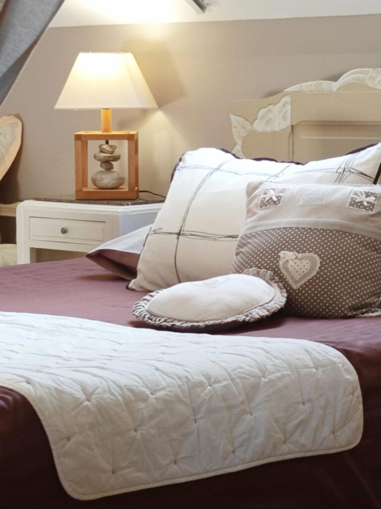 Pensée pour accueillir les familles dans une atmosphère chaleureuse et apaisante, la chambre Douceur porte parfaitement son nom. Spacieuse et lumineuse, elle offre un cadre confortable où parents et enfants peuvent se retrouver et partager de précieux moments pendant leur séjour.Aménagée avec soin, cette chambre familiale dispose de couchages, permettant à toute la famille de séjourner dans un même espace tout en conservant confort et tranquillité. Les teintes douces, la décoration soignée et l’ambiance cocooning invitent naturellement au repos.